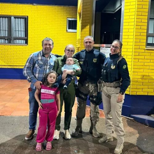 Eles estavam próximos da unidade operacional da PRF e chegaram com o bebê no colo, pedindo por ajuda. Em vídeo divulgado pela polícia, é possível ver a família deixando o carro rapidamente.