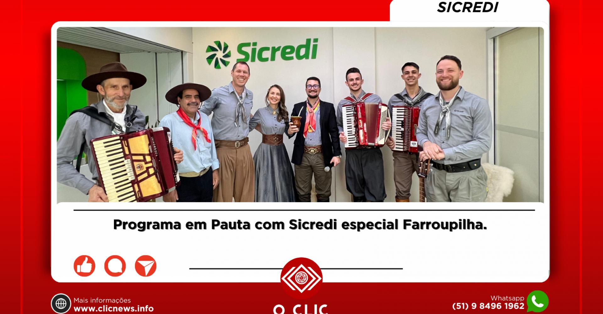 No programa EM PAUTA COM A SICREDI, estiveram reunidos nos estúdios da Rádio Cultura, os gerentes das agências de Fontoura Xavier e São José do Herval: Josiani e Eduardo e colaboradores Pablo, Gabriel e William que participaram da roda de conversas com o radialista Joélson, este foi um Programa de valorização da cultura e da tradição gaúcha, no GALPÃO DO SICREDI. O Programa foi ao som de músicas gauchescas alusivas ao 20 de setembro, e iniciou com os internautas participando de uma Live respondendo à pergunta: O que você mais gosta em ser gaúcho?com sorteio de 01 Faqueiro Corte Rápido entre os participantes.