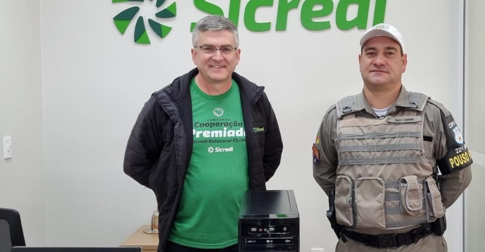 A Cooperativa Sicredi Botucaraí RS/MG, através de sua Agência de Pouso Novo, realizou a doação de um computador ao destacamento da Brigada Militar do município