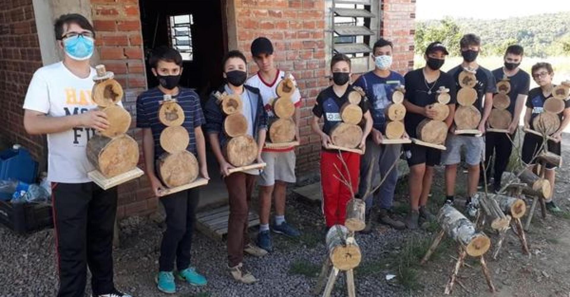 As crianças participantes das oficinas de artes e marcenaria oferecidas pelo CRAS de São José do Herval, com professor Paulo Guerra professora Jaque Borba têm participado da produção de elementos decorativos que auxiliarão a administração municipal a ornamentar os espaços públicos.