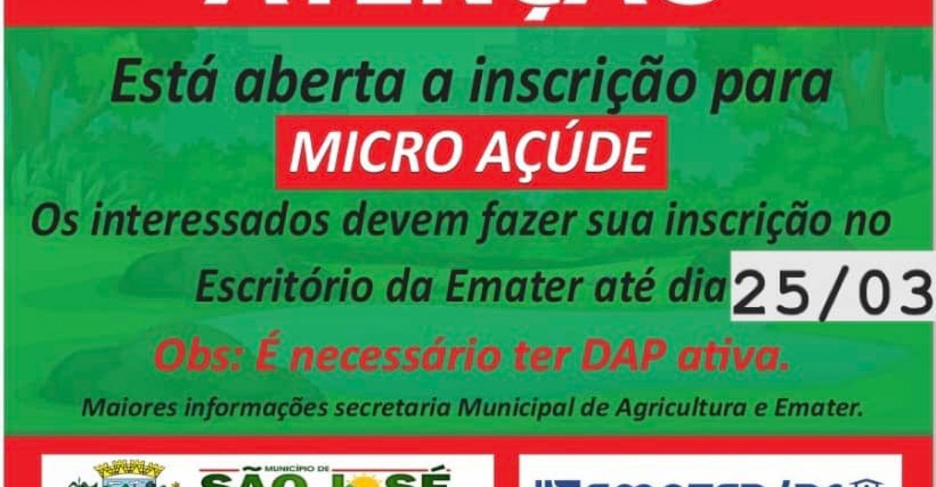 A Administração do município de São José do Herval informa que estão abertas a inscrições para agricultores que tenham interesse na construção de novos açudes em sua propriedade.