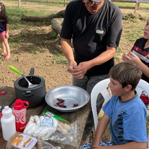 Ao chegarem no local da cancha, os alunos receberam uma aula do Sr Sergio Cabral, que além de explicar todo o treinamento e preparação necessários para os animais participarem destas competições, ainda salientou a importância em cuidados com a automedicação. Os pequenos tiveram a oportunidade de ver de perto os animais que participam destas competições, caminhar por dentro das canchas e conhecer toda a estrutura necessária para a realização de um “carreira”.