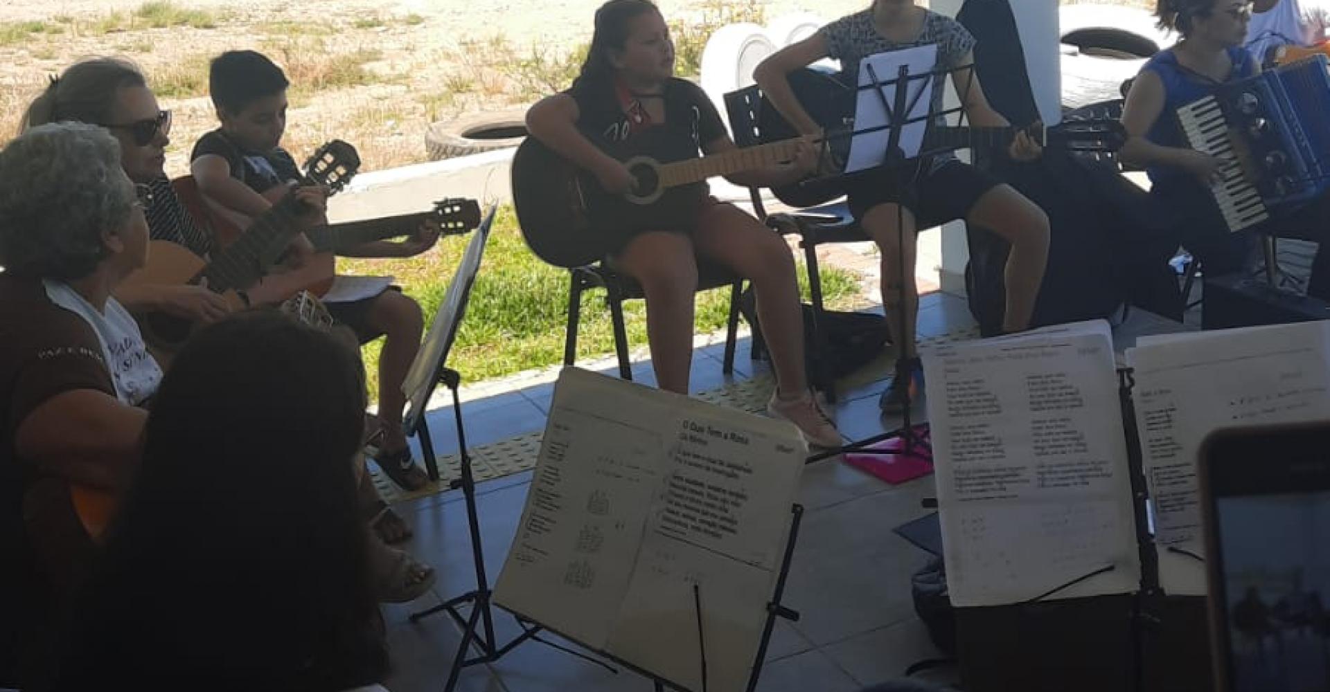 Registro dos alunos do curso de violão e gaita do CRAS- Centro de Referência em Assistência Social, Vila Vaz, em ensaio para o Festival Cultural e Natalino que ocorrerá na Praça Municipal dia 18 de dezembro, a partir das 16 horas! Novas inscrições para turmas de violão e gaita (acordeom) para o ano de 2023 já podem ser realizadas no local, com Ariane ou Adri Quevedo. As aulas continuarão sendo ministradas pelo instrutor de música Juninho da Silva, o curso é gratuito, e prioritariamente deverá incluir os beneficiários do Programa Auxílio Brasil e cadastrados no CADúnico.