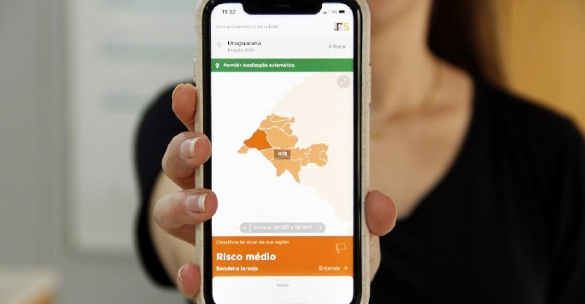 O governo do Estado lançou um aplicativo de celular que permite acompanhar, em tempo real, a cor da bandeira dos municípios conforme o mapa do Distanciamento Controlado. O serviço está disponível para sistema Android e iOS e se insere no âmbito do rs.gov.br, conjunto de esforços de transformação digital do Executivo.