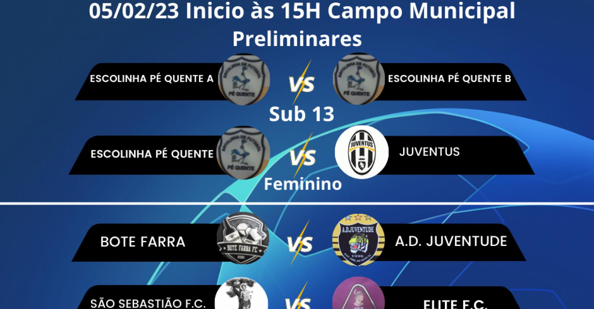 O primeiro jogo preliminar sera realizado entre a equipe da Escolinha Pé Quente A, contra a equipe da Escolinha Pé Quente B. O segundo confronto preliminar sera a vez das gurias calçarem as chuteiras e entrarem em campo num confronto entre a equipe da Escolinha Pé Quente, contra a equipe da Juventus.