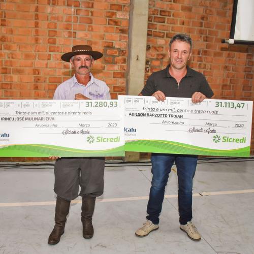Naquele momento foi realizada entrega simbólica para Irineu José Mulinari Civa, associado da agência Arvorezinha Centro, prêmio de R$ 31.280,93 e Adilson Barzotto Troian, associado da agência Arvorezinha Figueira, prêmio de R$ 31.113,47.