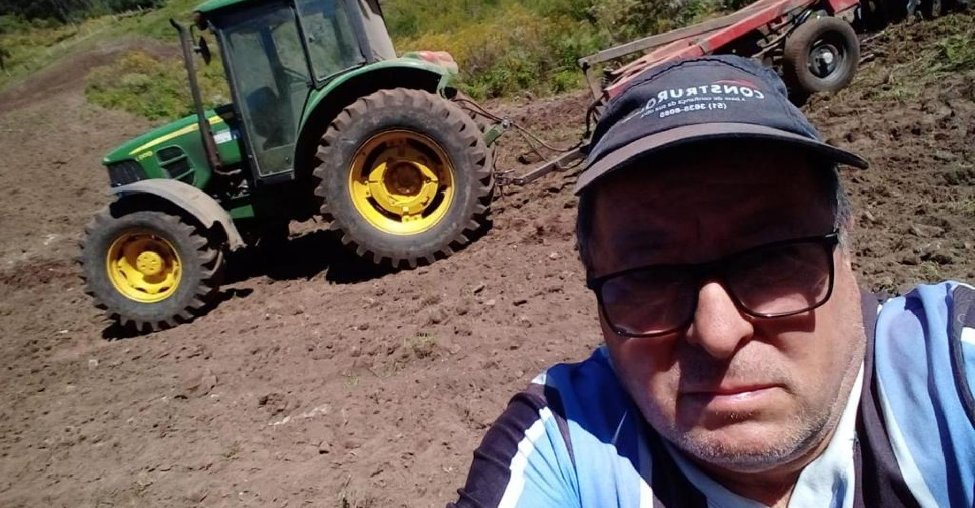 (Na foto, o operador de maquinário Dirlei e um dos proprietários beneficiado pelos serviços).