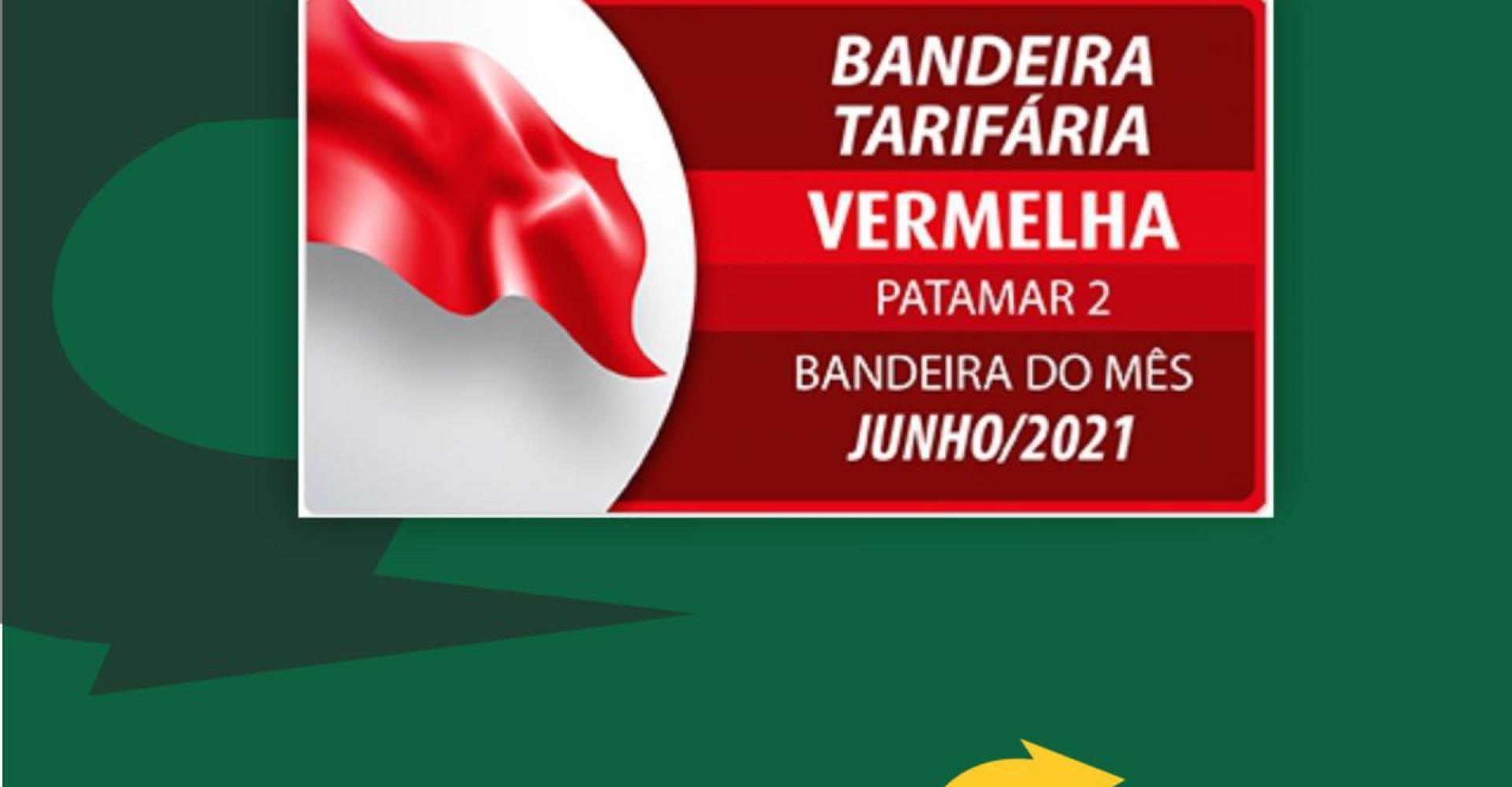 A bandeira tarifária em junho de 2021 será vermelha, patamar 2, com custo de R$6,243 para cada 100kWh consumidos. Maio foi o primeiro mês da estação seca nas principais bacias hidrográficas do Sistema Interligado Nacional (SIN), registrando condições hidrológicas desfavoráveis.