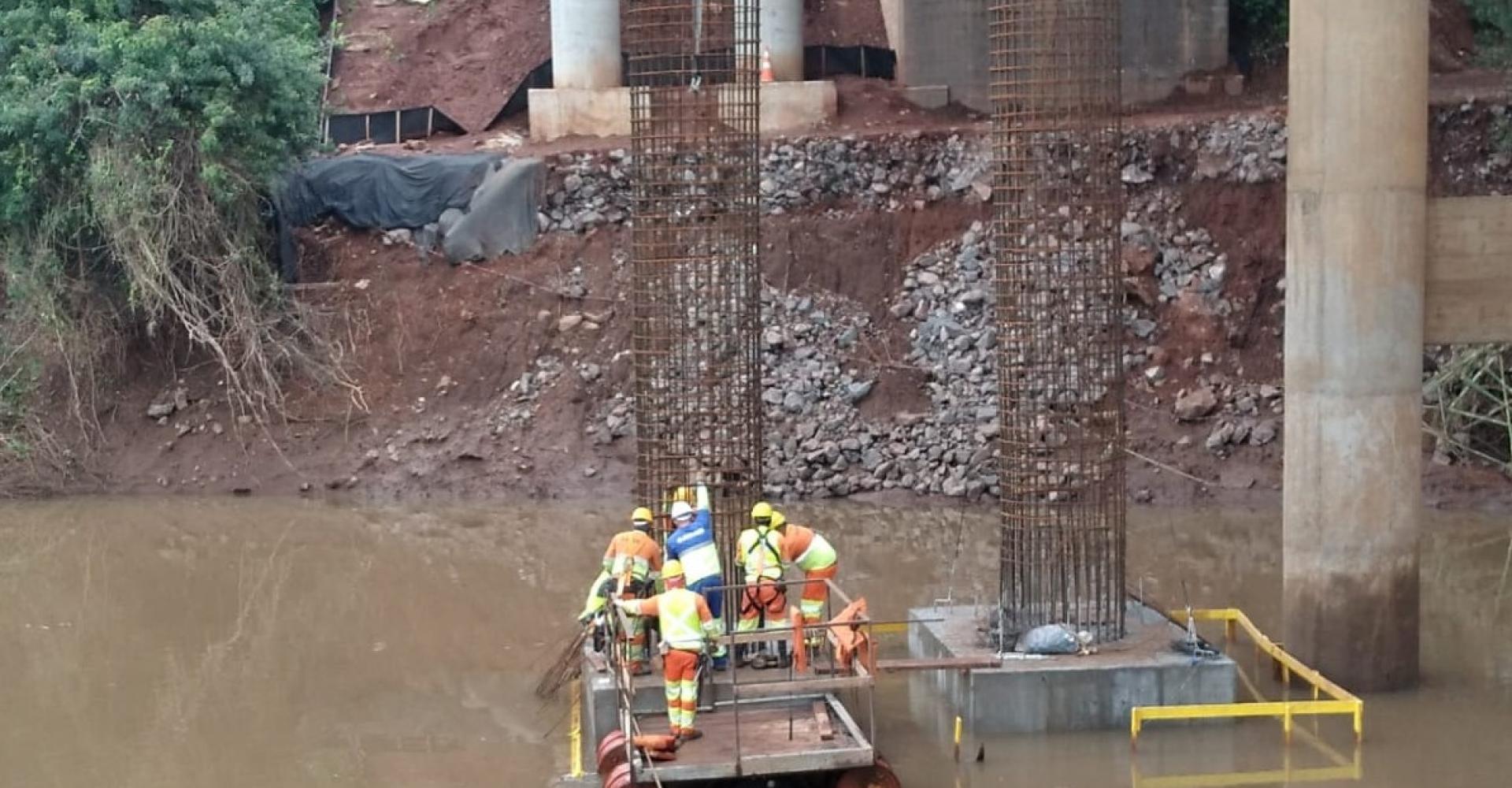 A CCR ViaSul informa a evolução das obras na ponte sobre o Arroio Boa Vista, na região do km 350 da BR-386, em Estrela. As intervenções acontecem em ambos os sentidos da rodovia e preveem o alargamento da estrutura com implantação de acostamento e passeio, além das ações de construção da faixa adicional, que já vêm acontecendo.