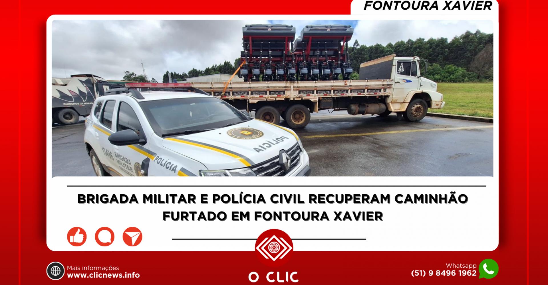 BRIGADA MILITAR E POLÍCIA CIVIL RECUPERAM CAMINHÃO FURTADO EM FONTOURA XAVIER