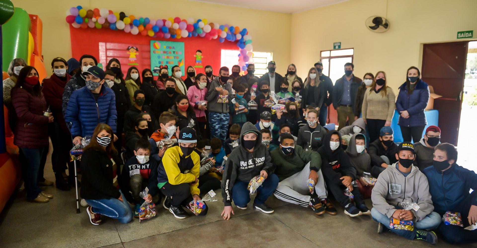 Durante a tarde de quinta-feira, os alunos puderam brincar nos brinquedos infláveis, patrocinado pelo Sicredi, Banco do Brasil, Secretaria da Assistência Social, comércio local e Vereadores de Fontoura Xavier. Também, a Cerfox, através do Presidente Diógenes Laste esteve entregando doce e a Secretaria da Educação também esteve entregando presentes.