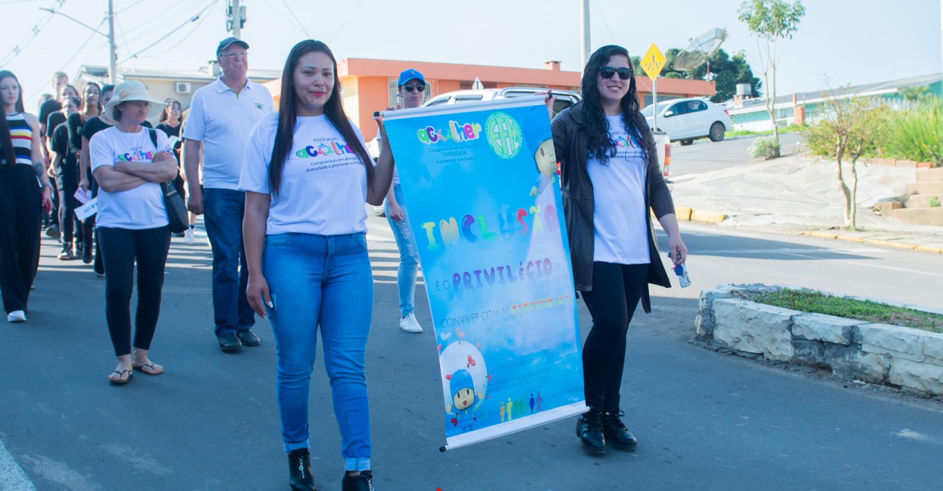 Na última sexta-feira (26), a Associação Acolher, em parceria com a Escola Instituto Estadual Ernesto Ferreira Maia, promoveu uma caminhada pela conscientização das deficiências nas ruas de Fontoura Xavier.
