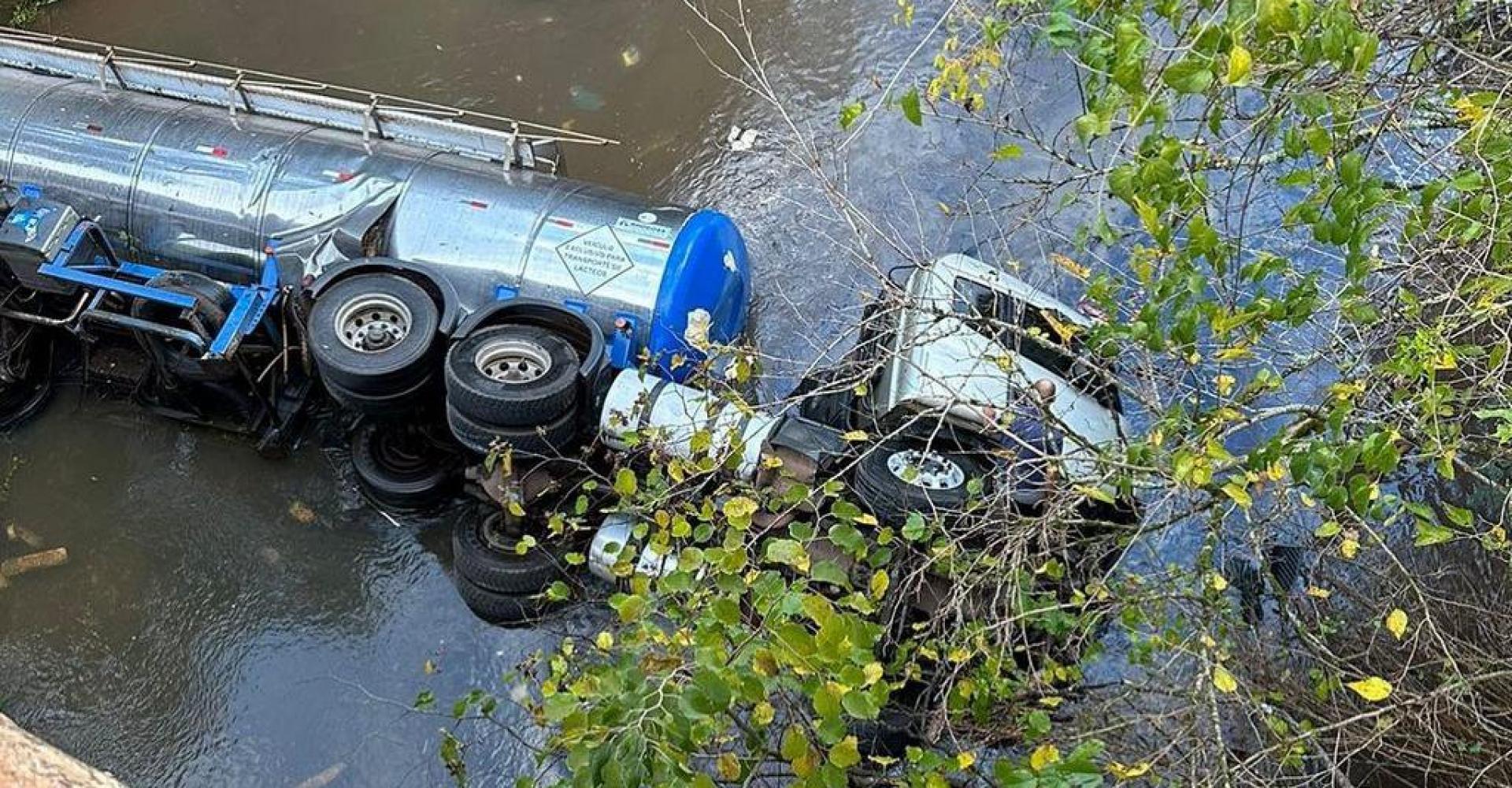 Caminhão de leite despenca de ponte na BR-285, sobre o Rio Jacuí
