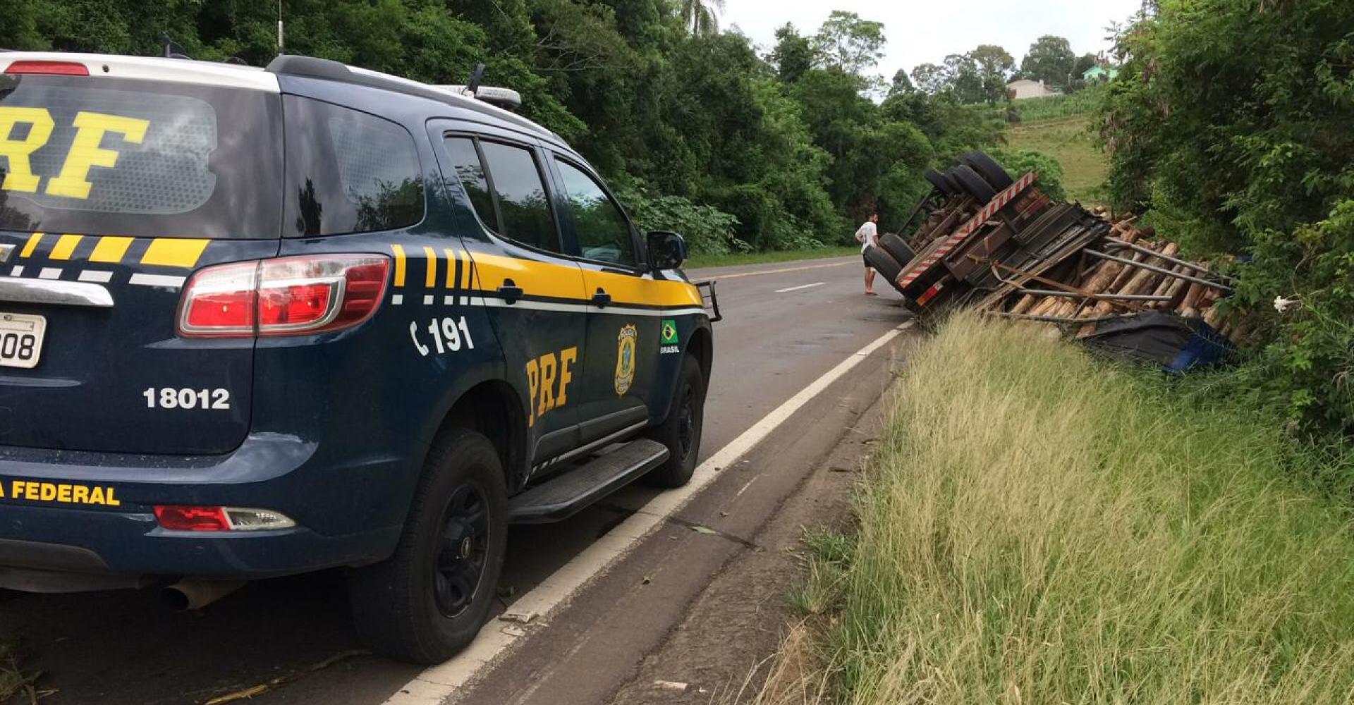 Um caminhão de lenha tombou no Km 299 da BR 386, em Pouso Novo na manhã desta segunda-feira, dia 18 de fevereiro. O veículo está sendo retirado. O acidente aconteceu por volta das 07h15 min. Um dos três ocupantes do caminhão teve ferimentos leves e foi encaminhado ao Hospital de Lajeado.