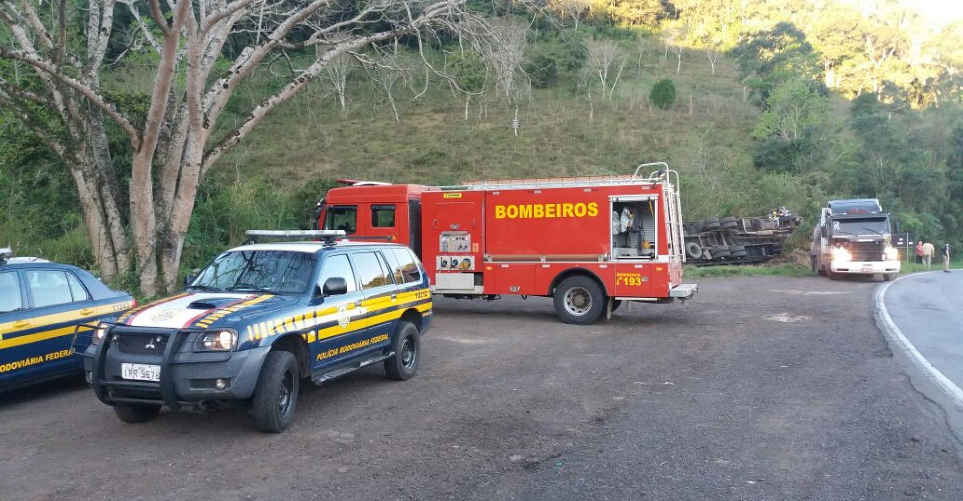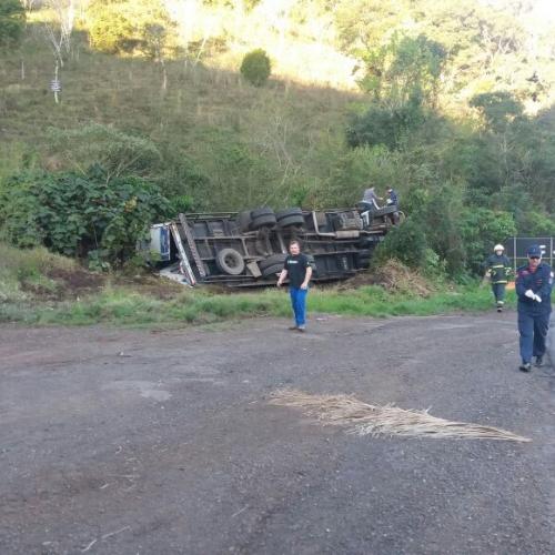 Caminhão sai da pista e deixa um ferido na Serra de Pouso Novo