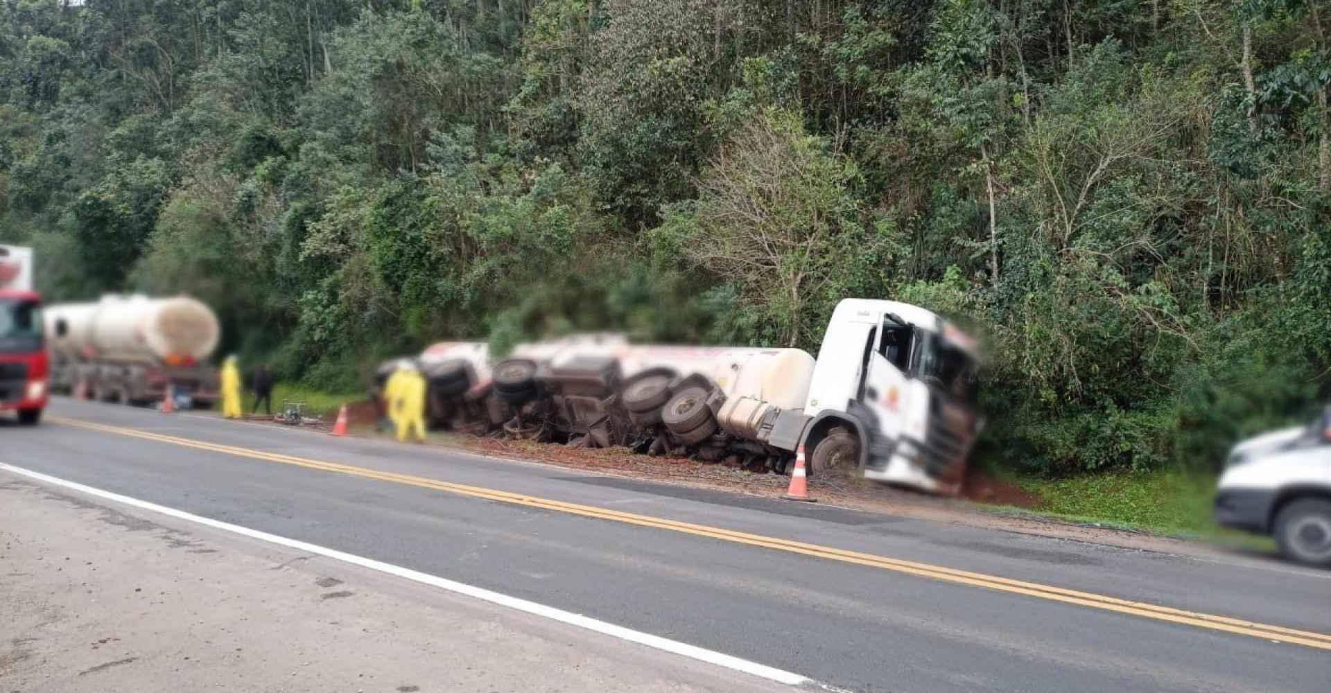Caminhão tomba próximo ao Restaurante do Gringo no município de Pouso Novo.