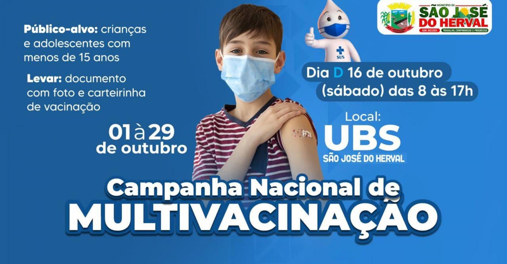 Neste sábado, dia 16, a Secretaria da Saúde de São José do Herval dá continuidade a Campanha Nacional de Multivacinação.