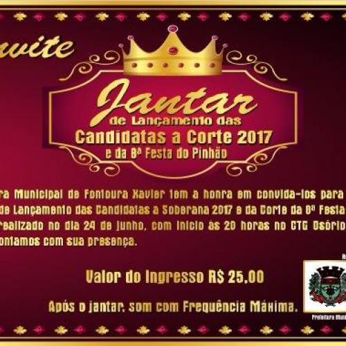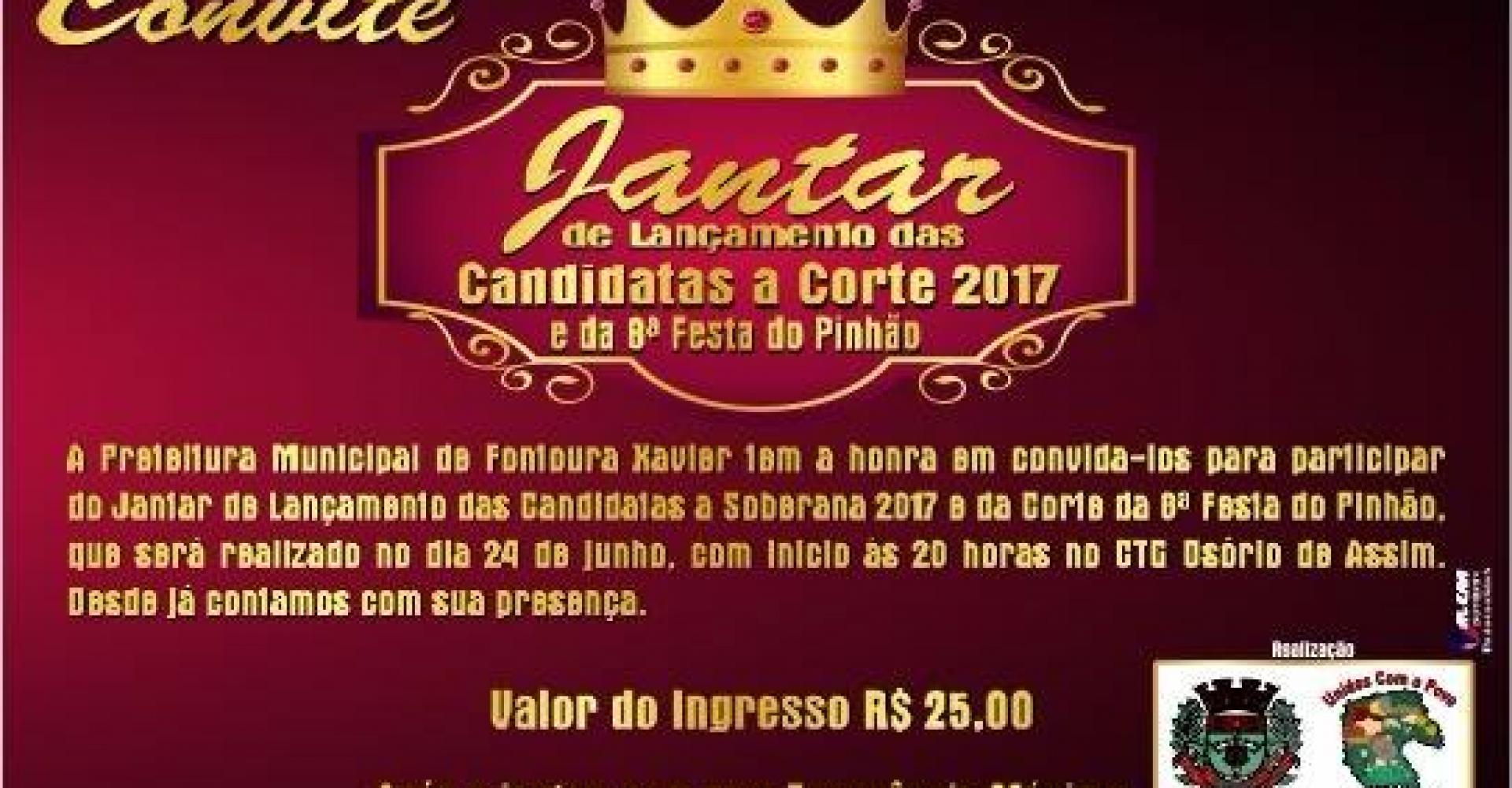 Neste sábado (24) pela primeira vez no município, as candidatas à corte do município e 8ª Festa do Pinhão serão apresentadas em um jantar de lançamento que ocorre no CTG Osório de Assis.