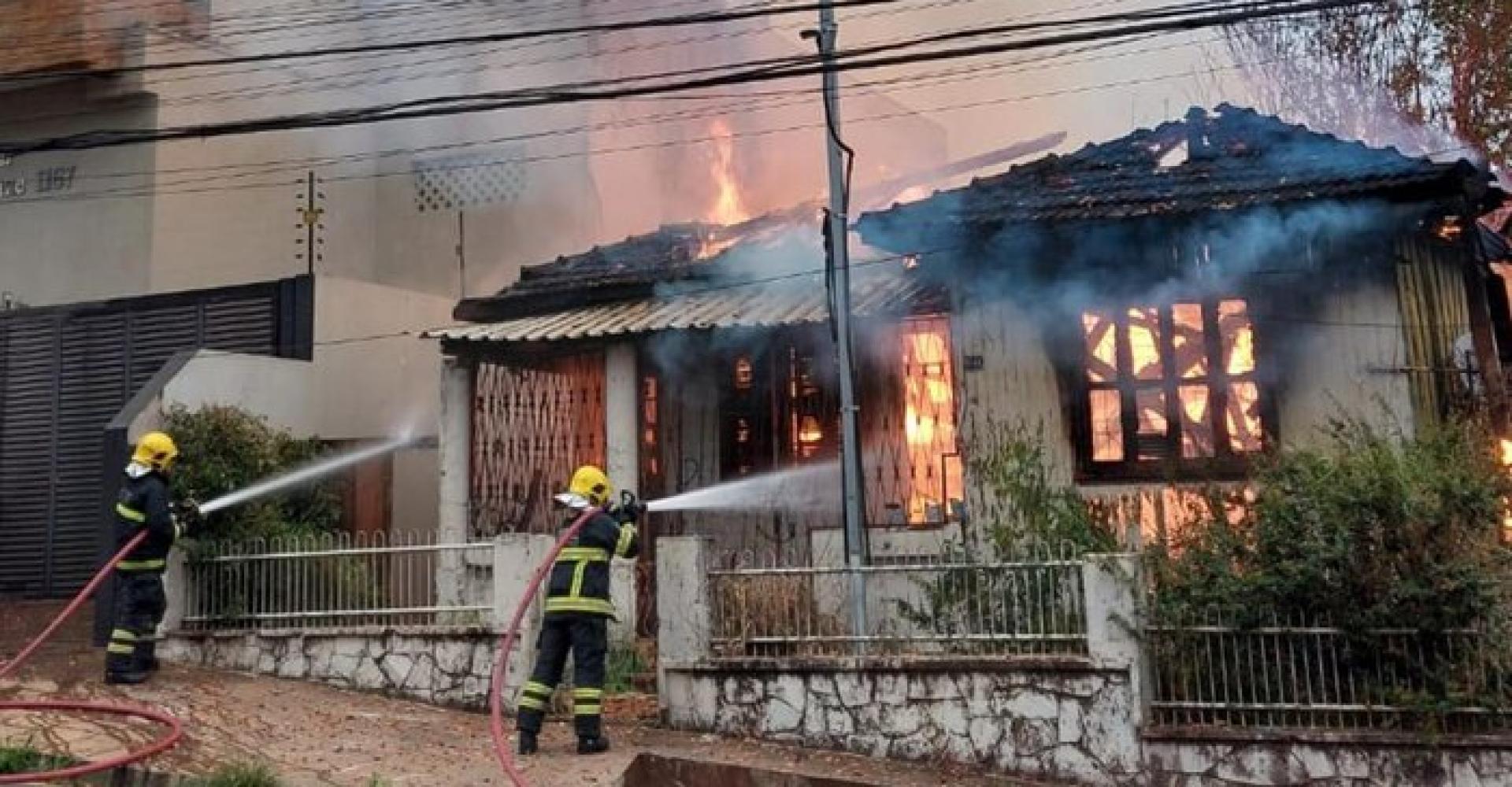Casa é destruída pelo fogo no centro de Passo Fundo