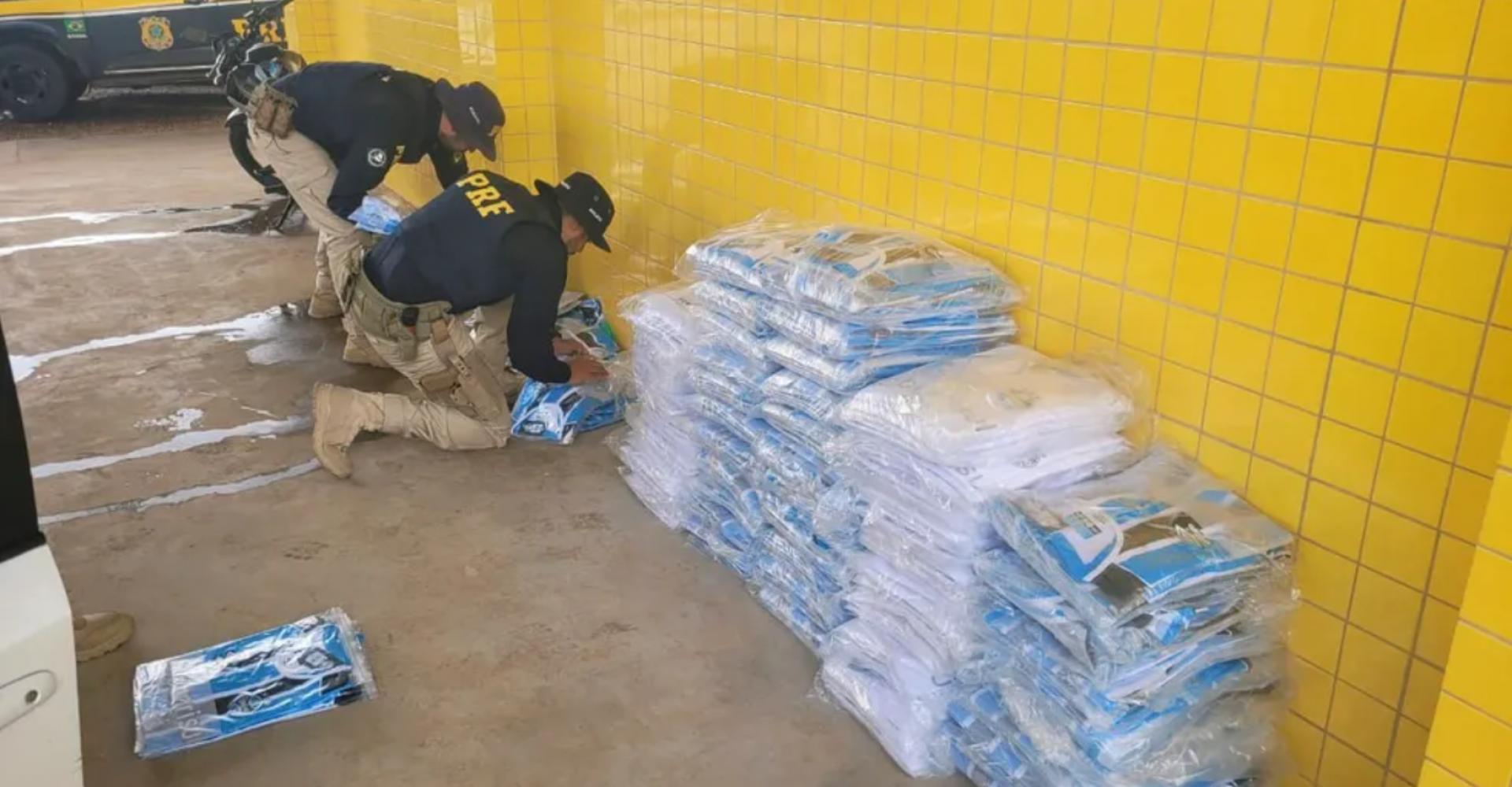 Segundo a PRF, os agentes abordaram o veículo, com placas de Minas Gerais, e encontraram um total de 596 peças falsificadas do clube de futebol gaúcho. O motorista não apresentou nota fiscal para comprovar a procedência dos produtos.