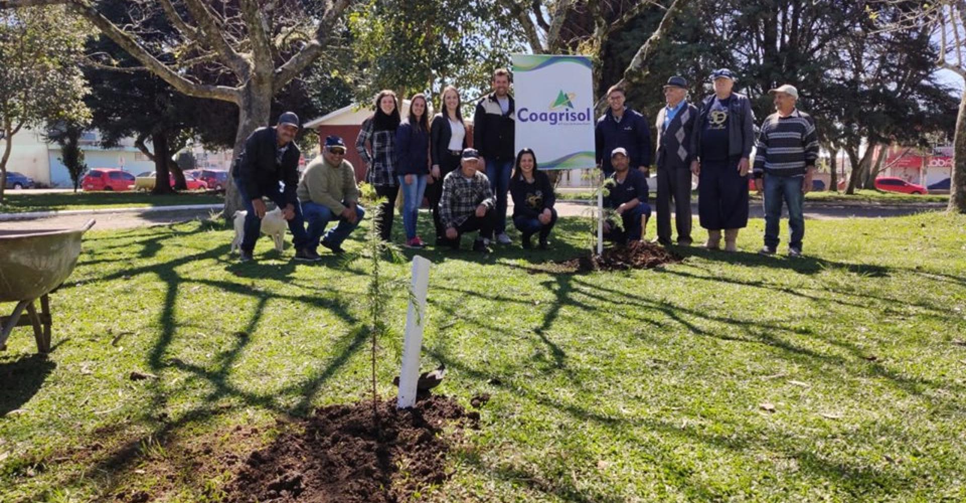 Integrando o calendário de comemorações dos 50 anos da Coagrisol, a equipe de funcionários da Coagrisol de Fontoura Xavier teve a iniciativa de plantar Pinheiro na praça municipal nesta segunda-feira, dia 23.