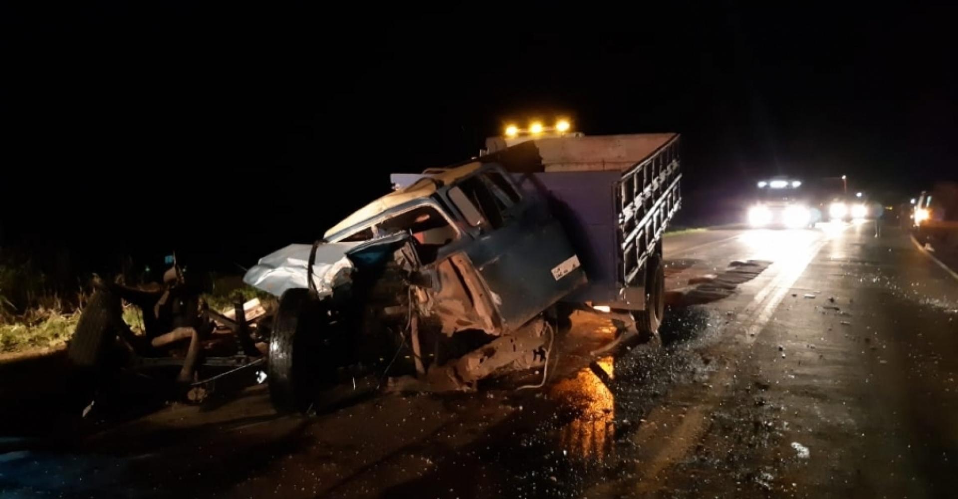 A colisão frontal se deu entre um caminhão Ford F600 de Ibirapuitã e um caminhão-trator Volvo FH 460 de Passo Fundo que tracionava um reboque próprio para o transporte de automóveis.