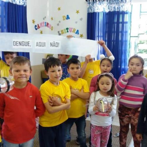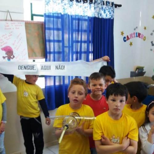 Partindo da percepção que a ação das crianças é fundamental para o desenvolvimento de ações de combate ao mosquito Aedes aegypti e às doenças por ele transmitidas: dengue, Zika e chikungunya, a professora Márcia Nicolau explorou em sala de aula, com o primeiro ano do ensino fundamental, a temática “Dengue, Aqui não!”.