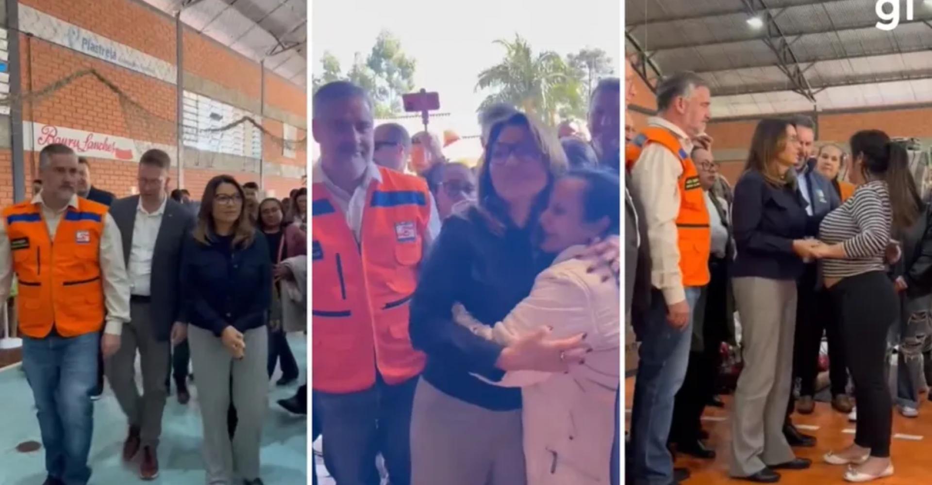 Na sequência, a primeira-dama e o ministro-chefe da Secretaria de Comunicação Social, Paulo Pimenta, estiveram em Estrela. No município, eles conversaram com as famílias abrigadas no Ginásio Ito João Snel e realizaram a entrega de cestas básicas.