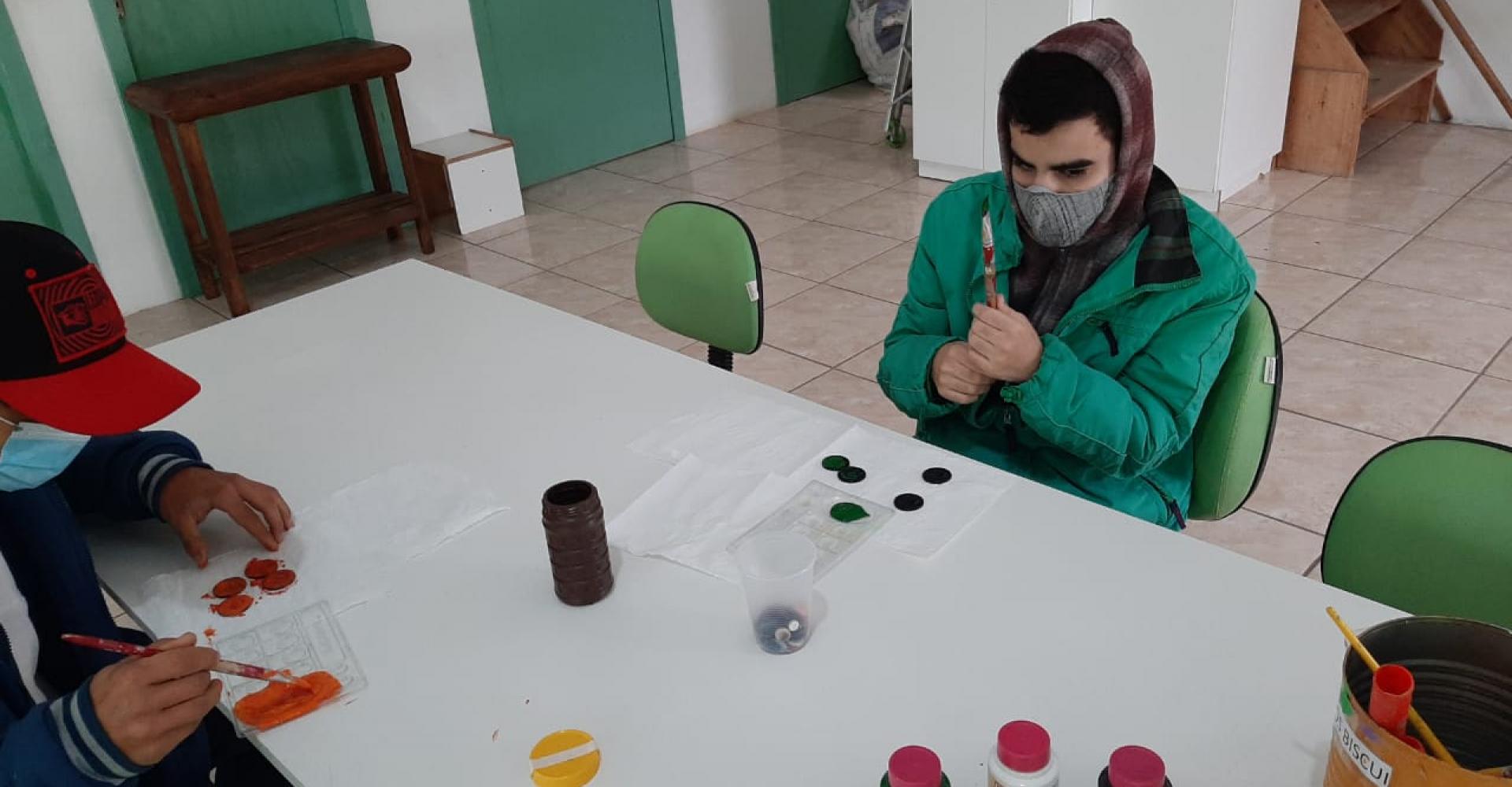 As oficinas para alunos especiais estão sendo ministradas pela professora Jaqueline de Borba. De acordo com a Secretária, diversas atividades estão sendo desenvolvidas, como por exemplo pintura em potes, montagem de jardins, pintura em telas, artesanato com argilas, artesanato com pedras, dentre outras atividades.