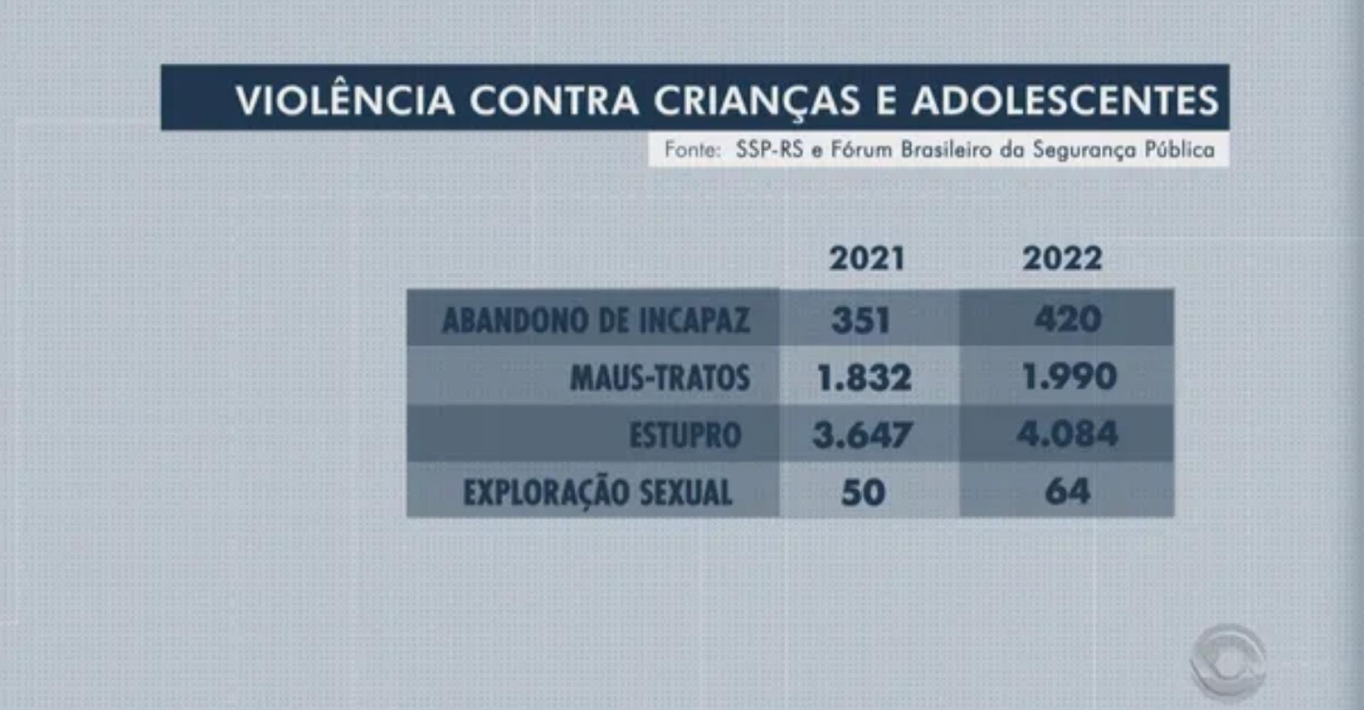 Além disso, entre 2021 e 2022, foram registrados aumentos em casos de exploração sexual de menores, maus-tratos e estupro de vulnerável.