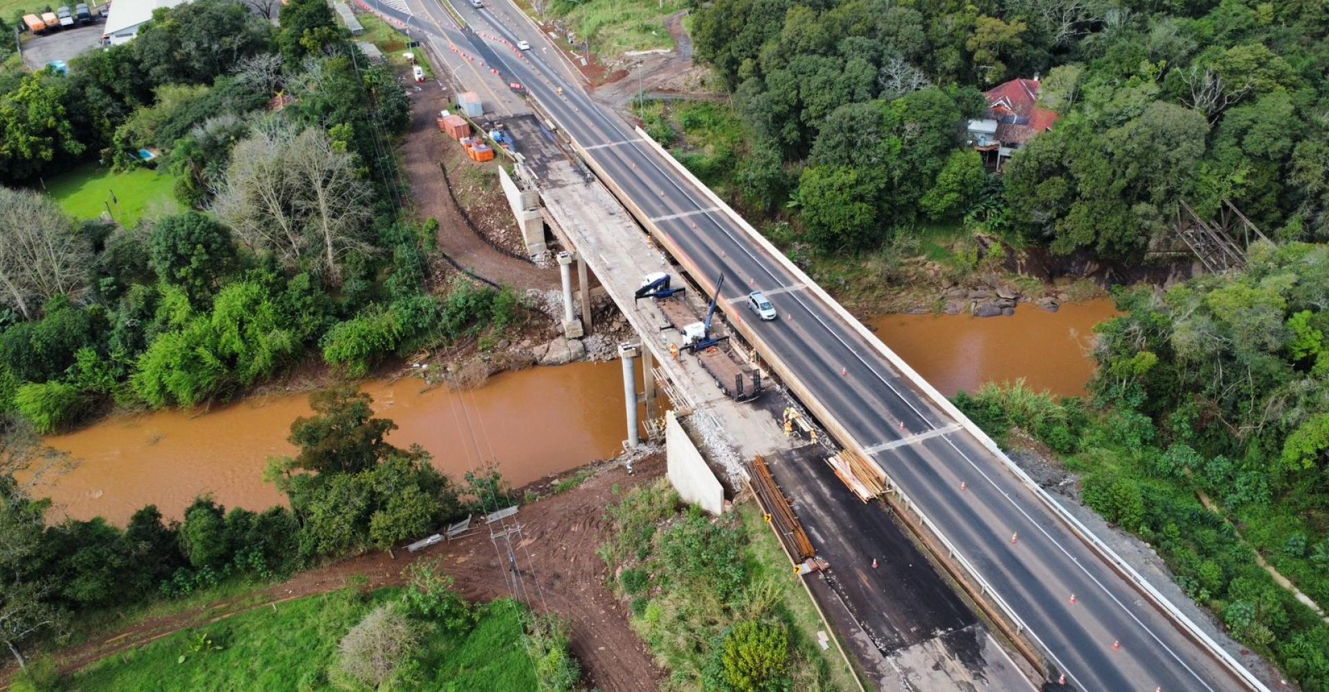 Duplicação da BR-386: CCR ViaSul iça vigas na ponte sobre o Arroio Forquetinha