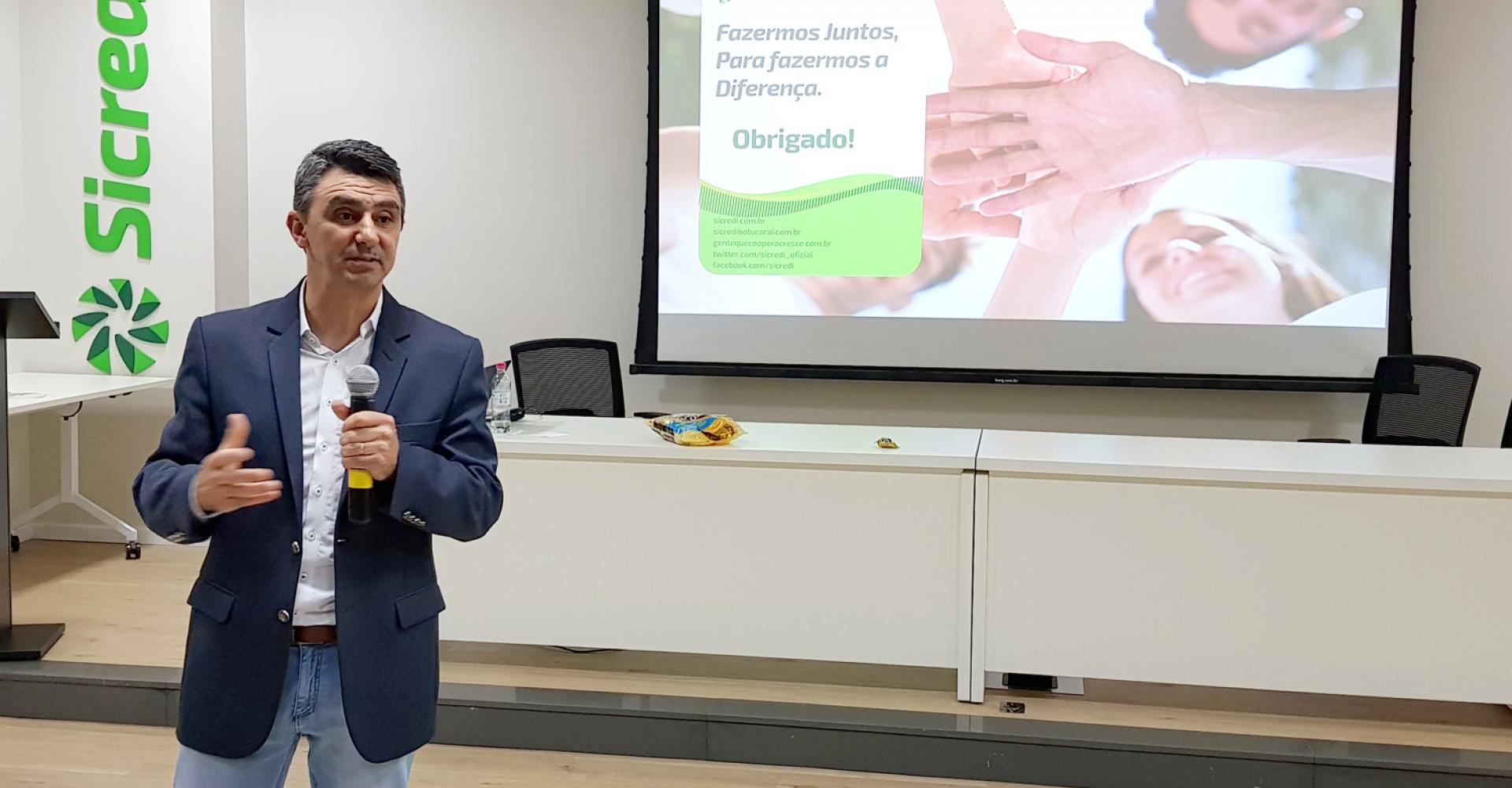 O Diretor Executivo da Sicredi Botucaraí RS, Carlos Rogério Matuella, proferiu palestra para mais de 50 alunos da graduação e pós-graduação da URGS (Universidade Estadual do Rio Grande do Sul), Campus Soledade, sobre o tema “Papel das Cooperativas no Desenvolvimento Regional, e Empreendedorismo”. O evento ocorreu no auditório Dinossani Gariboti, na Sede Regional da Sicredi Botucaraí RS, na noite de sexta-feira, dia 19 de outubro.