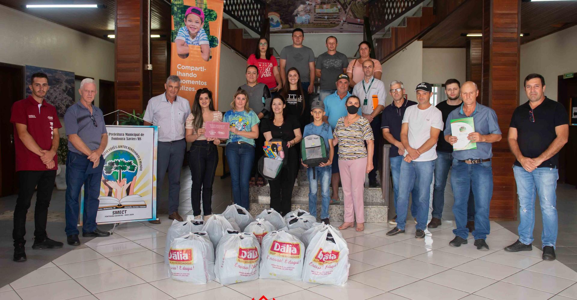 Estiveram presentes na recepção dos empresários e produtores, o Prefeito Municipal. Luiz Armando Taffarel, a Secretária da Educação, Laudete Bortoncello e o Secretário da Administração, Rudinei de Farias, a diretora da escola contemplada, Roberta Machado, e o estudante Yago Arbusti Oliveira, que representou os alunos da escolas que irão ganhar o kit escolar.