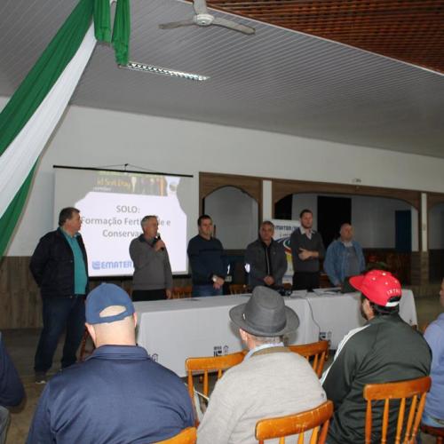 O ponto alto da reunião foram as palestras de informação e orientação prestadas à comunidade presente. Na parte da manhã, foram ministradas duas palestras. Na primeira, debateu-se acerca da formação, fertilidade e conservação dos solos, conduzida pelo Engenheiro Agrônomo Josemar Parise ATR de produção vegetal do regional da EMATER de Soledade.