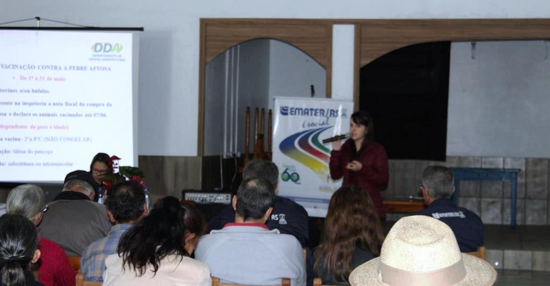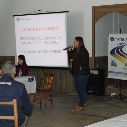 Na segunda palestra da manhã, a Veterinária Débora Lemes Silva abordou diferentes questões voltadas à Raiva Herbívora. Também foram prestadas informações acerca das obrigações sanitárias que os produtores rurais possuem com a Inspetoria Veterinária, é reforçado o aviso sobre a campanha de vacinação para combate à febre aftosa, que encontra-se em desenvolvimento ao longo de maio.