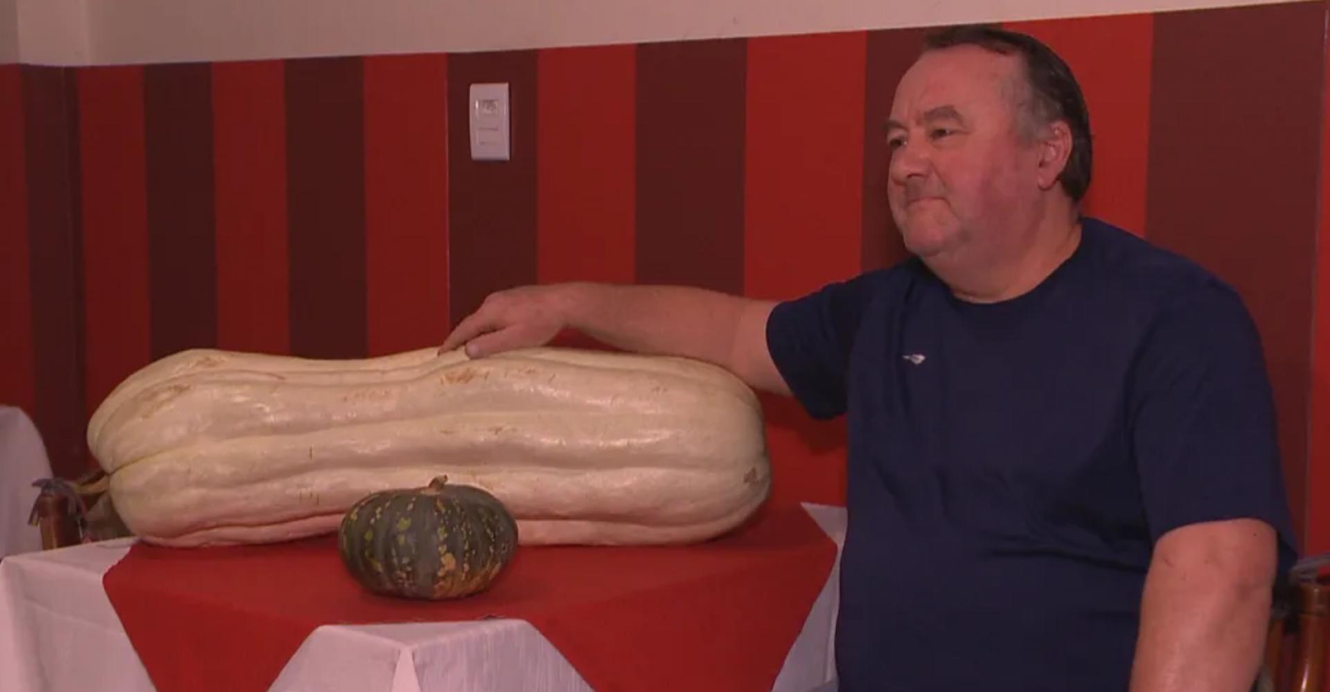 Nos últimos dias, casos de vegetais com tamanhos um tanto “avantajados” têm chamado a atenção no Rio Grande do Sul. Em Santa Cruz do Sul, por exemplo, uma abóbora de 26 kg e 95 centímetros de comprimento foi colhida no quintal de uma casa.