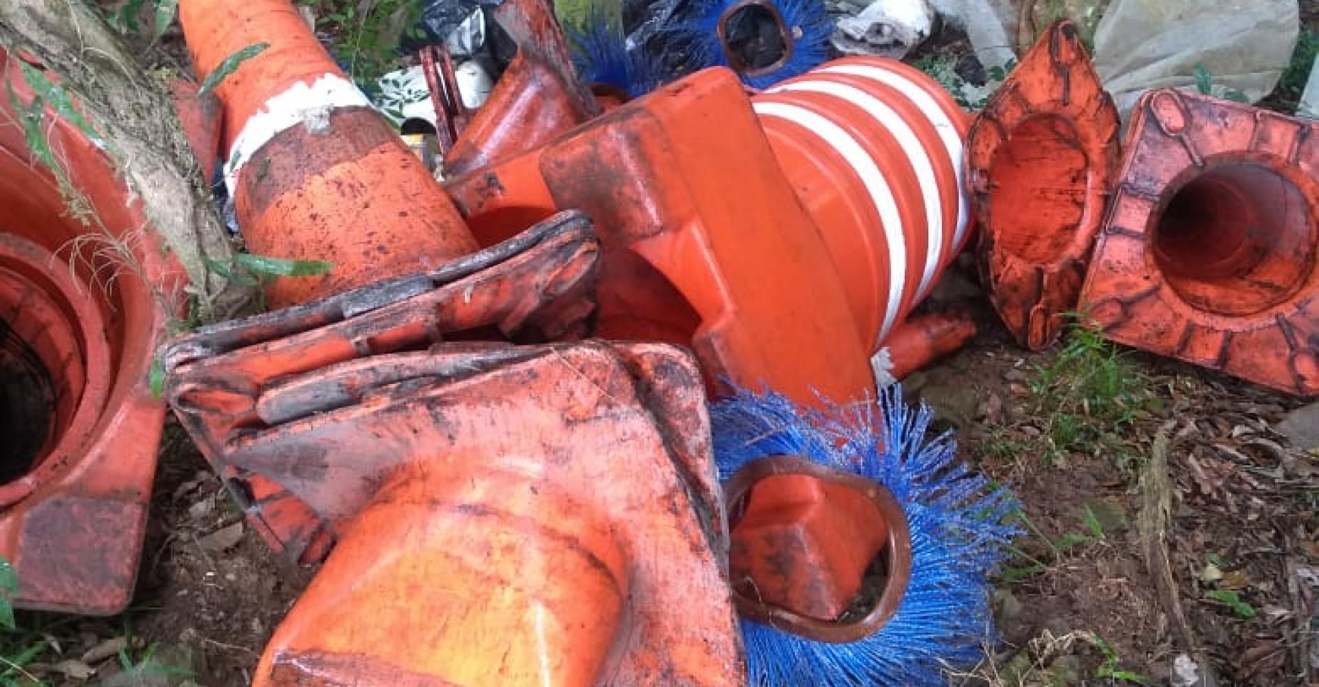 Entre os entulhos foram localizados pneus, televisores, cones, vassouras para uso no asfalto, litros e demais lixos.