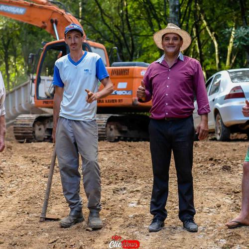 A Secretária, Adriéli Gerevini e o Prefeito Municipal, Luiz Armando Taffarel, também estiveram presentes na comunidade para visitação da obra.