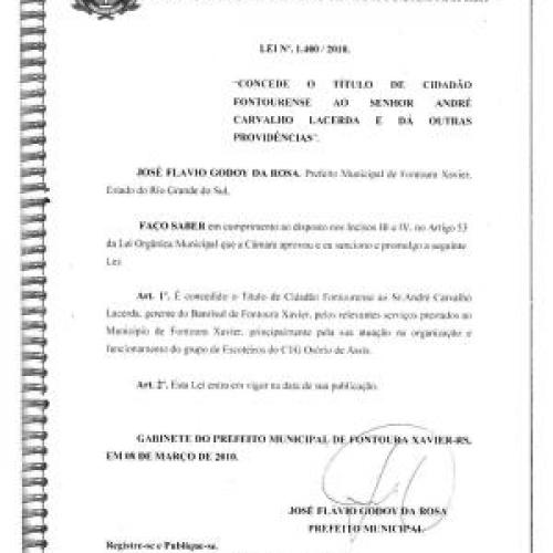 André chegou a reveber o título de Cidadão Fontourense, como pode ser observado em imagem em anexo.