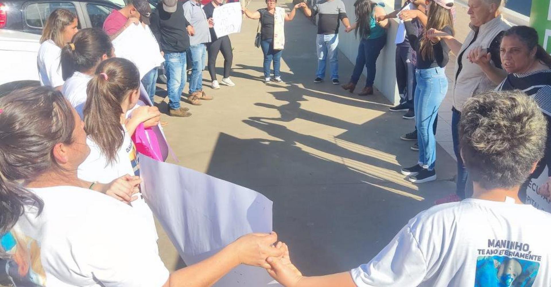 Familiares e amigos de Murilo Maciel Lemes, que morreu aos dois meses de idade, em 19 de junho, pediram justiça em um protesto em frente ao Hospital Frei Clemente, em Soledade, neste sábado (22).