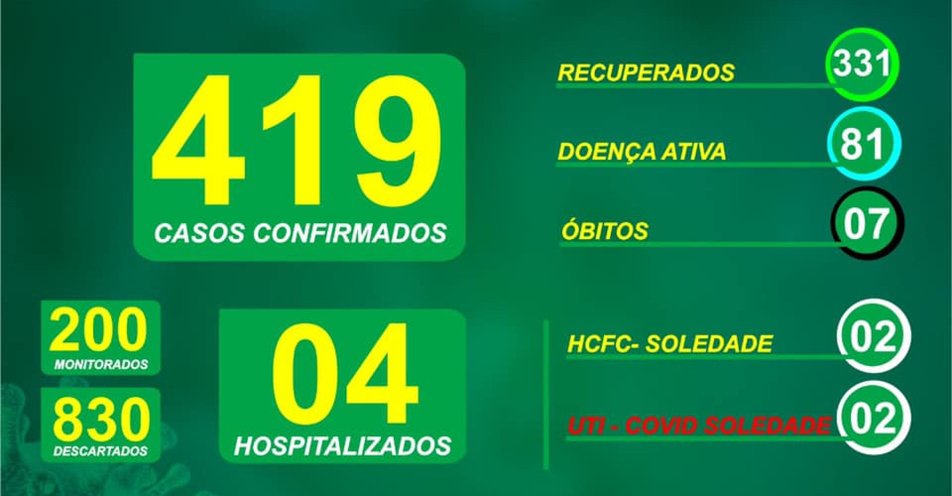 De acordo com a secretaria da Saúde, o município está a beira de um colapso. O óbito trata-se de um homem de 82 anos com comorbidades. Já os casos confirmados são de 13 mulheres sendo de 62, 45, 17, 62, 20, 26, 23, 74, 36,