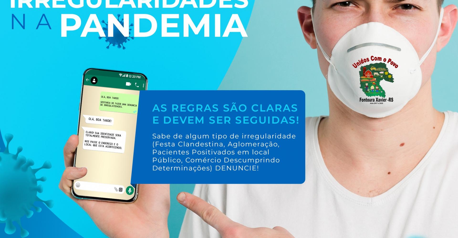 O Departamento de Fiscalização da Prefeitura de Fontoura Xavier lançou hoje (16) um canal 24h pra denúncias de irregularidades ou descumprimento de normas e medidas de segurança relacionadas a Pandemia de COVID-19.