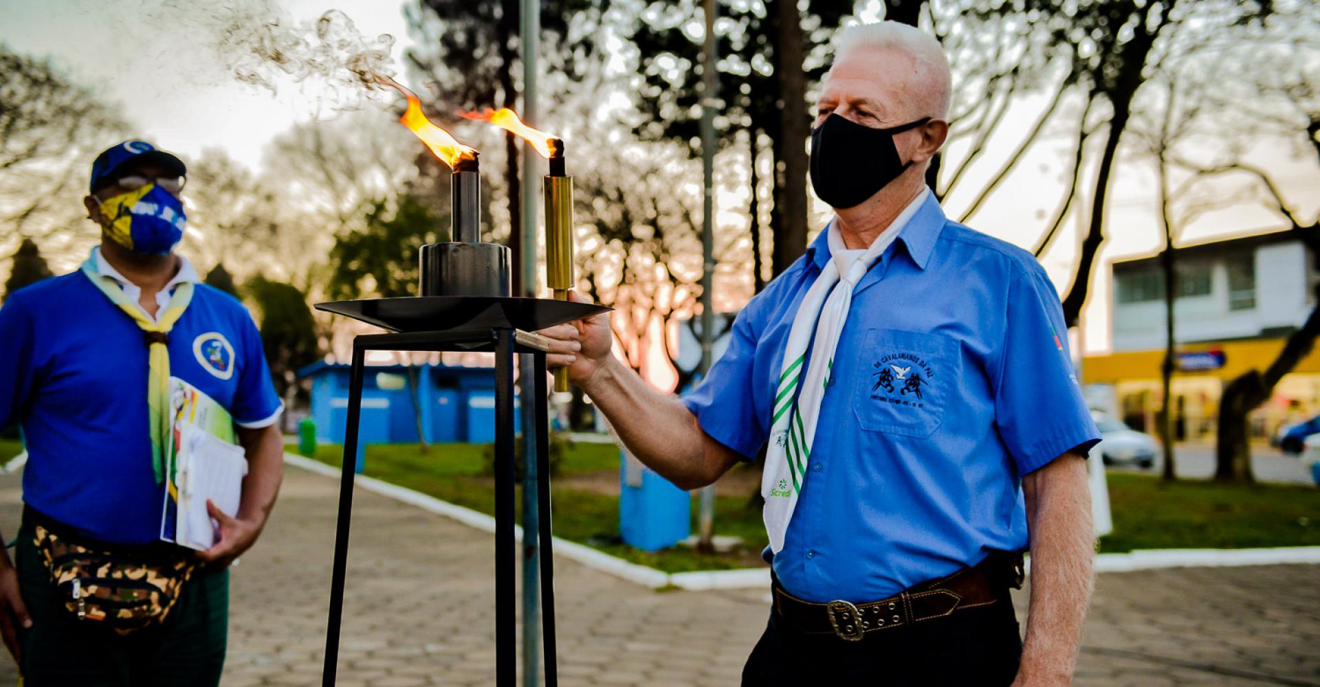 O fogo simbólico da pátria surgiu em 1937, como ideia de um grupo de patriotas, no Rio Grande do Sul, que procurava um símbolo que representasse o ardor cívico do nosso povo. A escolha recaiu sobre o fogo, elemento cuja descoberta deu início a evolução do homem.