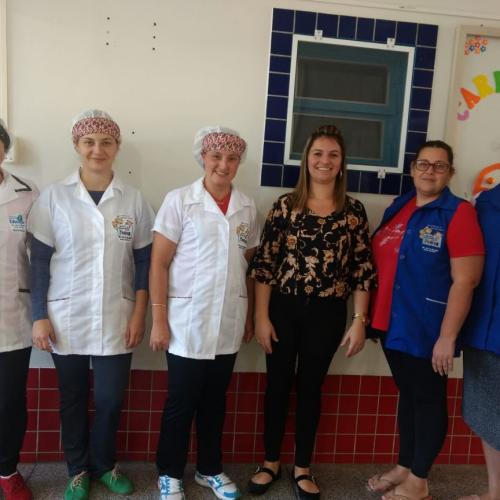 Na manhã de 25/03, a Secretária Municipal de Educação, Micheli Formentão, esteve nas escolas da rede municipal de ensino para realização da entrega dos uniformes aos profissionais que atuam nos setores de limpeza, manutenção e merenda escolar.