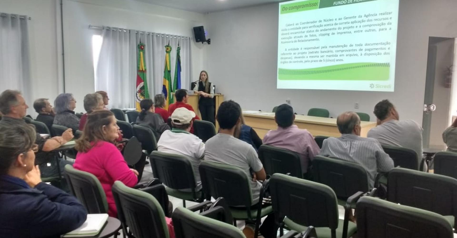 De acordo com a gerente, a reunião prévia realizada no início do mês teve por objetivo discutir junto com as entidades a canalização do recurso para um único projeto. “Como somos um município pequeno, nosso valor não é muito expressivo. Também nos cercamos de parcerias para construir algo realmente significativo para a comunidade. Nessa reunião, todas entidades que possuem alguma ideia lançam para o grupo, indiferente se ele contempla a sua entidade ou não. No ano passado tivemos apenas o pedido do auditório, em concordância de todos”, destacou.