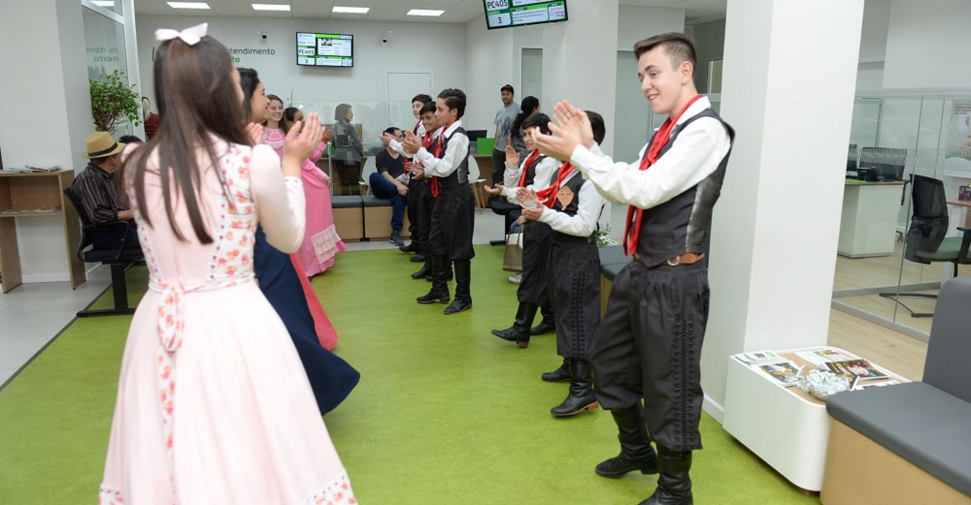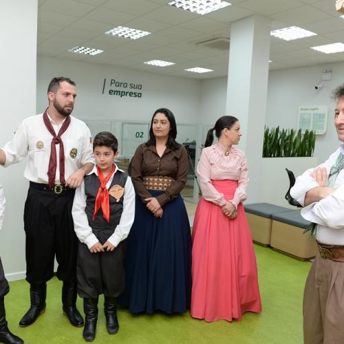 Integrantes da patronagem e das Invernadas foram até a Agência do Sicredi agradecer o apoio da Cooperativa à Entidade, durante a realização da Semana Farroupilha, bem como nos demais eventos da entidade tradicionalista.