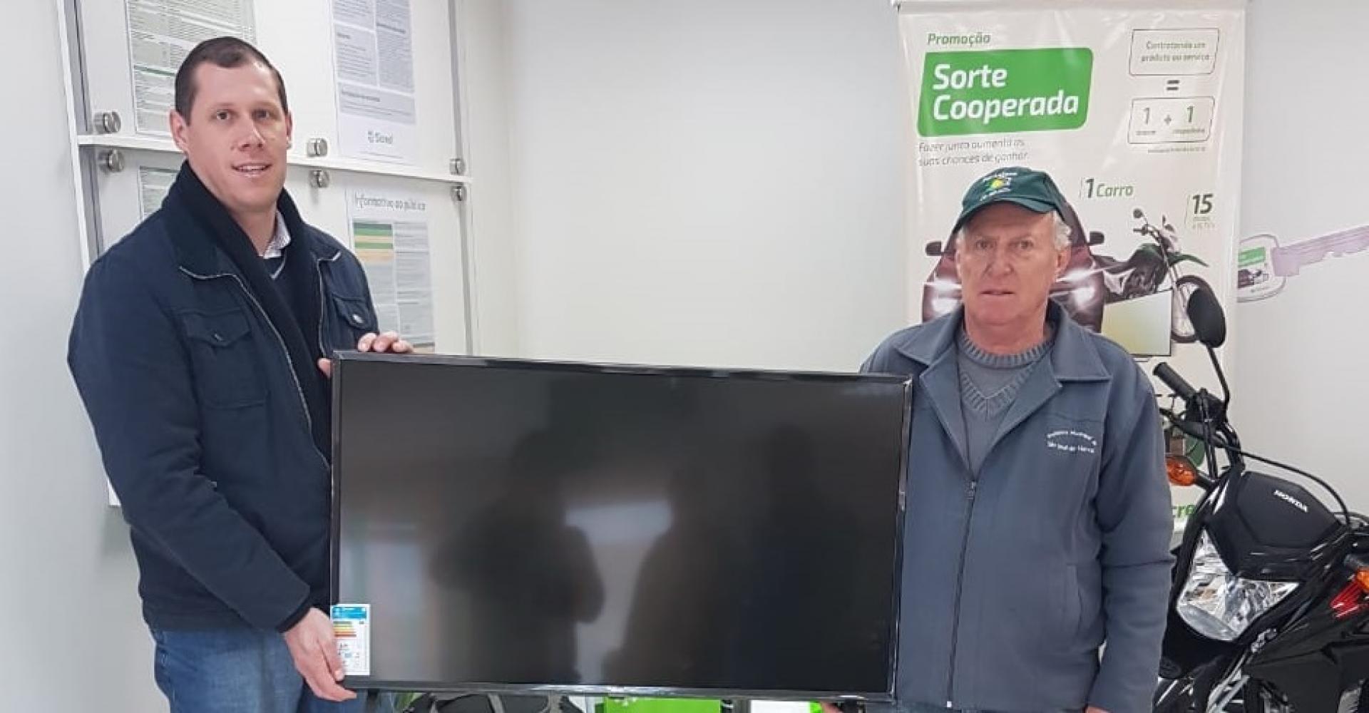 Gentil Luiz Bondan foi o ganhador do televisor do Sicredi de São José do Herval
