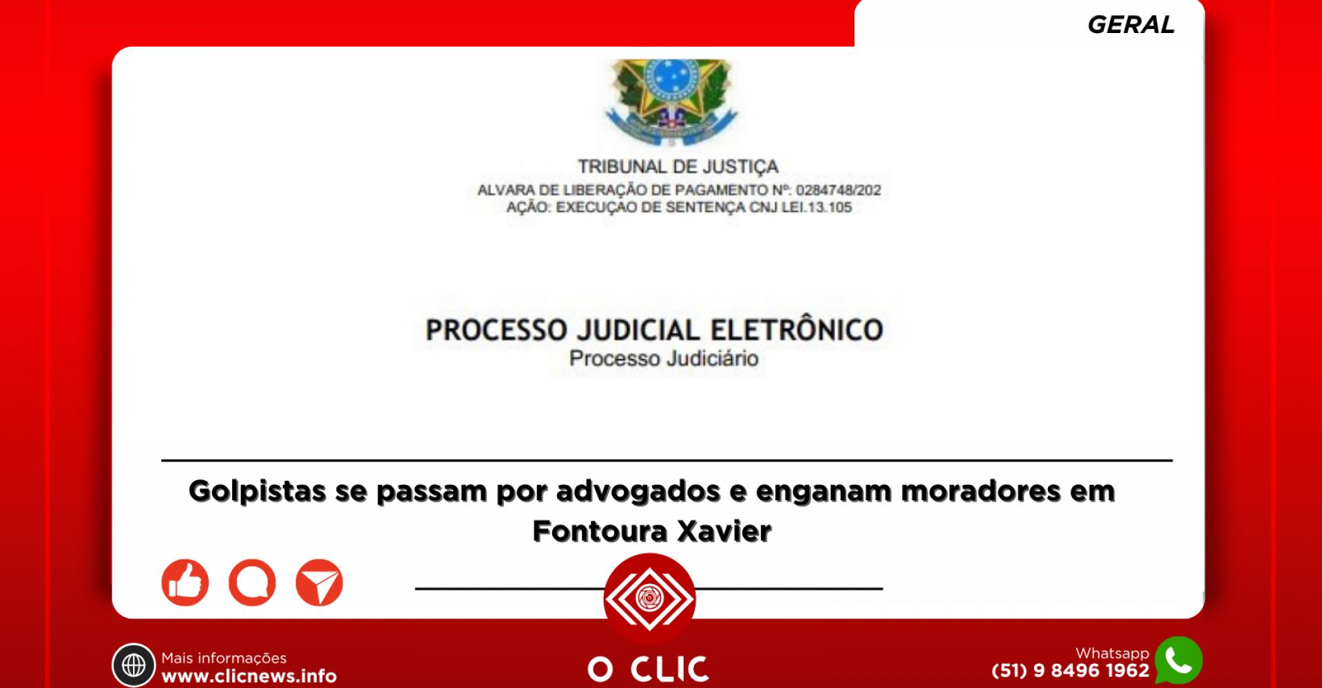 Moradores de Fontoura Xavier precisam ficar atentos a um novo golpe que está circulando na cidade. Criminosos estão se passando por advogados e enviando mensagens falsas pelo WhatsApp para enganar as pessoas.
