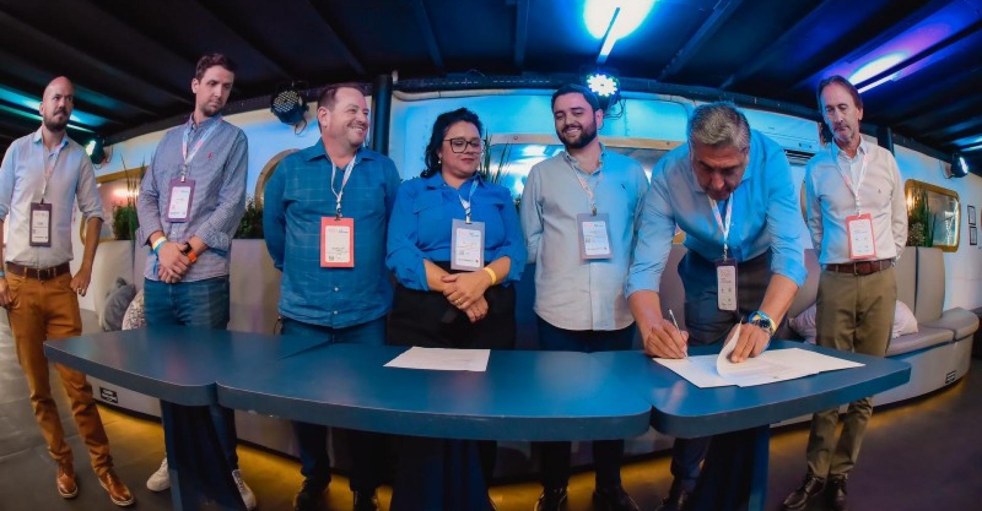 O governo do Estado assinou nesta quinta-feira (30/3) o protocolo de intenções que visa ampliar a sustentabilidade no agronegócio gaúcho. A formalização com a startup Agrigooders ocorreu durante o segundo dia de atividades do South Summit Brazil. O termo foi assinado pelo vice-governador Gabriel Souza e pelos secretários da Agricultura, Pecuária, Produção Sustentável e Irrigação, Giovani Feltes, do Meio Ambiente e Infraestrutura, Marjorie Kauffmann, e do Desenvolvimento Rural, Ronaldo Santini.