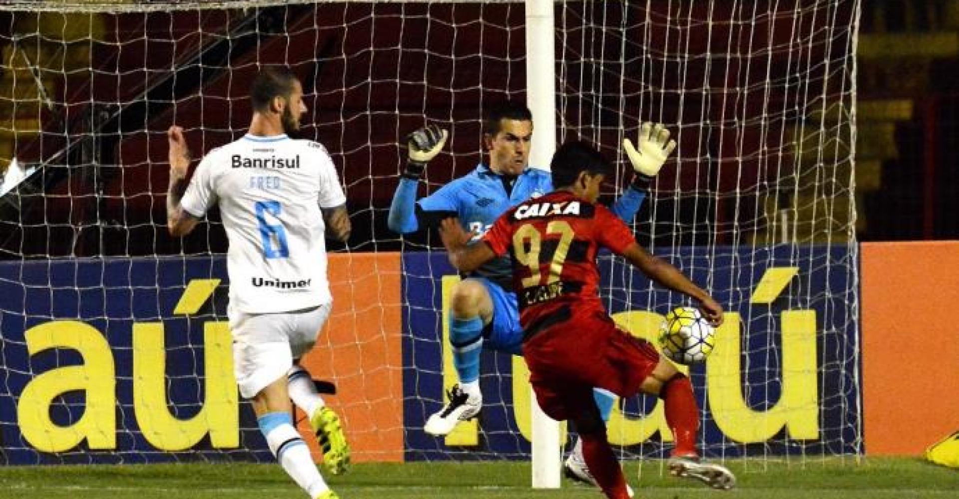 Gradualmente, os donos da casa foram empurrando a marcação gremista para o entorno da área. Aos 16 minutos, uma falta já levou perigo muito forte para o gol de Grohe. Diego Souza rolou para René na linha de fundo, em jogada ensaiada. Ele cruzou e Fred afastou para escanteio.